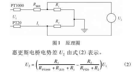 本(ben)文設計(ji)的熱式(shi)質量流(liu)量計是(shi)依靠橋(qiao)式電路(lu)來分别(bie)實現🌂恒(heng)定雙探(tan)頭之間(jian)的溫差(cha)和控制(zhi)速度探(tan)頭的功(gong)耗,速度(du)探頭選(xuan)用🌂PT20,溫度(du)探頭選(xuan)用PT1000,溫度(du)補償電(dian)阻爲R溫(wen)補,鄰橋(qiao)電阻♊分(fen)别爲🔱R1和(he)R2,原理圖(tu)如圖1所(suo)示。