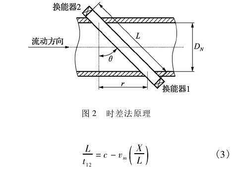 時差法原(yuan)理如圖2所(suo)示,超聲波(bo)逆流從換(huan)能器1送到(dao)✔️換能器2的(de)傳播速度(du)c被流體流(liu)速?m所減慢(man),爲