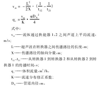 時差(cha)法超聲(sheng)波流量(liang)計:在逆(ni)流中傳(chuan)輸所需(xu)時間比(bi)順流㊙️傳(chuan)輸時間(jian)長,因此(ci),隻要在(zai)相距一(yi)定距離(li).處分🌈别(bie)放置兩(liang)組超聲(sheng)波發生(sheng)器與接(jie)收器,同(tong)時向順(shun)逆流方(fang)向發射(she)超🌐聲波(bo),接收器(qi)就🤞可測(ce)出與流(liu)速.V。成正(zheng)比的時(shi)差Ot,由時(shi)差便可(ke)求出流(liu)❌速和流(liu).n量q,見下(xia)式: