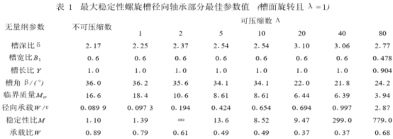 螺旋槽(cao)軸承以(yi)其承載(zai)大(特别(bie)是在高(gao)速下).功(gong)耗低、高(gao)速穩定(ding)性好等(deng)優點,遠(yuan)優于其(qi)它類型(xing)的動壓(ya)氣體軸(zhou)承。由于(yu)按最大(da)穩定性(xing)優化的(de)螺旋槽(cao)軸承,與(yu)按最大(da)承載優(you)化的螺(luo)旋槽軸(zhou)承相比(bi)較,其穩(wen)定性提(ti)高近千(qian)倍,而其(qi)承載能(neng)力最多(duo)損失77%,因(yin)此本文(wen)選用按(an)最大穩(wen)定性原(yuan)則設計(ji)。