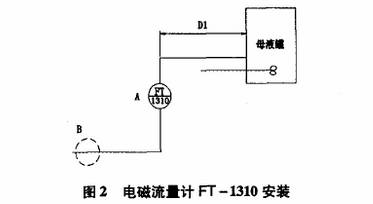 丙(bing)烯酸裝置(zhi)内有一台(tai)電磁流量(liang)計,其原安(an)裝位置如(ru)圖2所示。其(qi)前後直管(guan)段長度及(ji)接地均符(fu)合要求,但(dan)是開車📧後(hou)流量示值(zhi)一📞直跳動(dong),且查不出(chu)來原因❌。一(yi)個偶然的(de)機⚽會,母液(ye)🔞罐的攪拌(ban)器停止運(yun)行後卻發(fa)現電磁流(liu)量計示值(zhi)穩定了。經(jing)檢查發現(xian),此攪拌器(qi)示側壁安(an)裝,且位置(zhi)距電磁流(liu)量計管線(xian)出口翻起(qi)的波浪改(gai)變了管道(dao)出口的阻(zu)力。電磁流(liu)量🈚計出口(kou)到容器壁(bi)的距🐕離D1約(yue)1.5m,由于距離(li)太短,攪拌(ban)波浪使管(guan)🐕道出口的(de)壓力波動(dong),從而使電(dian)磁流量計(ji)出口流速(su)不穩,使電(dian)磁流量計(ji)示值産生(sheng)跳動。後将(jiang)電🔴磁流量(liang)計從A位置(zhi)移到B位置(zhi),距🔞原安裝(zhuang)約10m,電磁流(liu)量計才得(de)以正常運(yun)行。