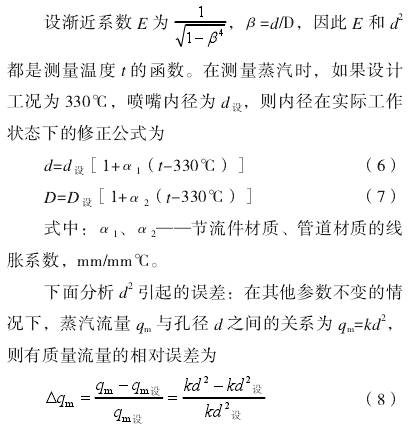 式中:qm、qm設(she)一一實(shi)際流量(liang)測量和(he)設計工(gong)況下的(de)流量,kg/s;ρ和(he)p設一-蒸(zheng)汽的實(shi)際密度(du)和設計(ji)工況下(xia)的密度(du),kg/m3。