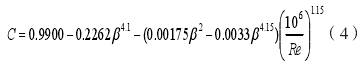 根據GB/T2624.3-2006《用(yong)安裝在(zai)圓形截(jie)面管道(dao)中的差(cha)壓裝置(zhi)測量滿(man)❓管流體(ti)流量第(di)3部分:噴(pen)嘴和文(wen)丘裏噴(pen)嘴》,ISA1932噴嘴(zui)流出系(xi)數C與Re和(he)β的之間(jian)的定量(liang)關系爲(wei)