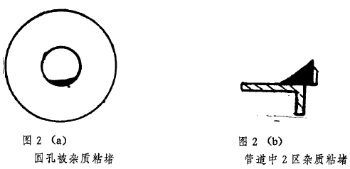在(zai)停車(che)一段(duan)時間(jian)後,當(dang)酸通(tong)過管(guan)道時(shi),管道(dao)中的(de)雜質(zhi)和酸(suan)中的(de)聚合(he)物以(yi)及雜(za)質,由(you)于受(shou)重力(li)的作(zuo)用🔞,一(yi)般沿(yan)管🤞道(dao)壁底(di)部随(sui)着酸(suan)向前(qian)移動(dong)。當流(liu)體通(tong)過孔(kong)闆流(liu)量計(ji)時,在(zai)(圖1)1區(qu)和2區(qu)産生(sheng)兩個(ge)死角(jiao),形成(cheng)死區(qu),雖然(ran)有一(yi)部分(fen)雜質(zhi),沿着(zhe)流線(xian)通過(guo)流量(liang)計,但(dan)絕大(da)多數(shu),被淤(yu)積于(yu)2區,時(shi)間一(yi)長,淤(yu)積的(de)雜質(zhi)就越(yue)多,淤(yu)積到(dao)一定(ding)程度(du),雜質(zhi)就慢(man)慢的(de)粘附(fu)在孔(kong)闆巾(jin)孔✔️的(de)邊緣(yuan),形成(cheng)如圖(tu)(2)(a)(b)所示(shi)的形(xing)狀。